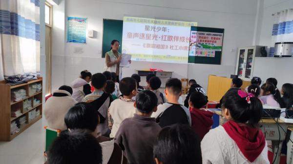 2025 年 10 月 30 日,淮南市 “七彩阳光” 未成年人关爱保护项目寿县服务点工作组,携手九龙小学开展 “童声逐星光,红歌伴成长 ——《歌唱祖国》”系列课堂,面向2-3 年级学生传递红色精神,助力儿童身心健康发展。
