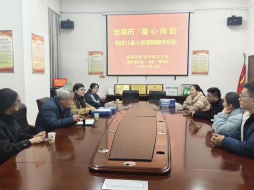 为精准服务儿童,扎实推进项目建设,12月11日,淮南师范学院教育学院赴市社会(儿童)福利院开展项目调研。教育学院党委书记欧阳儒阳、淮南市“童心向阳”困境儿童心理健康服务项目负责人左春荣带领志愿者团队开展此次调研。市社会(儿童)福利院院长冯润东、副院长黄莹莹及部门负责人陪同调研及座谈会,双方就项目目标、实施计划、资源整合等议题进行深入交流。