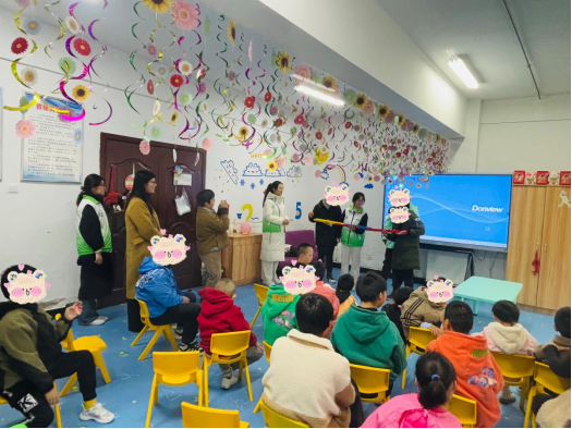 同时淮南师范学院教育学院“童心向阳”志愿者团队现场开展了一场以“信任与协作”为主题的团体心理辅导活动。通过小中大雨手势舞、“齐心协力管道传小球”和“环游世界”两项互动游戏,志愿者与孩子们在合作与欢笑中逐步建立情感联结,迈出信任关系的第一步。市社会(儿童)福利院副院长黄莹莹充分肯定了本次活动;“这些游戏看似简单,却能在无形中促进孩子们学会倾听、表达与信任。”带队志愿者左春荣老师表示,“我们并不急于追求完美结果,而是更关注他们在互动中的情绪变化和行为调整。今天很多孩子从躲避眼神到主动击掌,从沉默旁观到积极提醒同伴参与,这些细微转变正是信任建立的开始。”