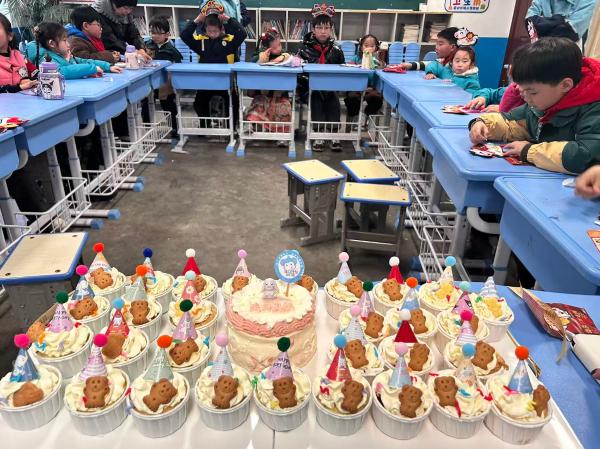 12月31日下午的新年集体生日会上,经开区第二小学校长也送上生日与新年祝福,并对爱心人士的暖冬礼物表达诚挚感谢。手工制作环节中,社工讲解DIY新年发箍制作步骤,结对儿童相互帮扶、分工协作,在提升动手能力的同时深化了友谊。活动核心环节里,志愿者为困境儿童戴上生日帽、点燃蜡烛,全体人员共唱生日快乐歌,孩子们默默许下新年愿望,分享甜甜的蛋糕,深刻体会被关爱、被重视的幸福。10名困境儿童和结对的小伙伴相互馈赠礼物,互道“新年快乐”,让跨越校园的友谊在冬日里愈发浓厚。