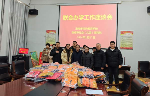 近日,淮南市社会(儿童)福利院迎来市特殊教育学校校长带领骨干教师一行,前来福利院开展学期末工作座谈会。市特教学校团队不仅带来了精心准备的 100 余套崭新校服,更与福利院领导、教师围绕深化合作展开深入交流,为福利院的特殊儿童成长之路注入满满暖意。