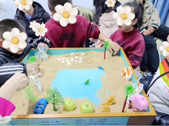 团体箱庭在结构性主题引导下,既保留自由表达空间,又强化规则意识与互动秩序。项目组心理咨询师全程观察与适度引导,关注儿童在物件选择、协商摆放与故事讲述中的情绪表现及同伴互动方式,帮助其在安全、接纳的氛围中体验被看见、被支持的积极感受。活动现场专注而温暖,孩子们在共同建构“心灵海岸”的过程中逐渐展现出更多表达勇气与合作意识。