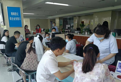为防止5月20日当天出现新人扎堆登记、现场混乱的情况,田家庵区民政局提前筹措,在相关媒体平台上发布加班通知,并开通电话及现场预约方式进行预约,最大限度确保当天井然有序。提前抽调局机关和低保中心若干名工作人员协助引导和办理。同时延长日常工作日的办理时间,婚姻登记处4个登记窗口开足马力满足群众登记需求。在所有预约号已经约满的情况下,为保障现役军人及消防员等这些“最可爱的人”的登记需求,婚姻登记处又加班加点,为他们在“520”完成领证心愿。5.20当天,田家庵区共办理结婚登记96对。