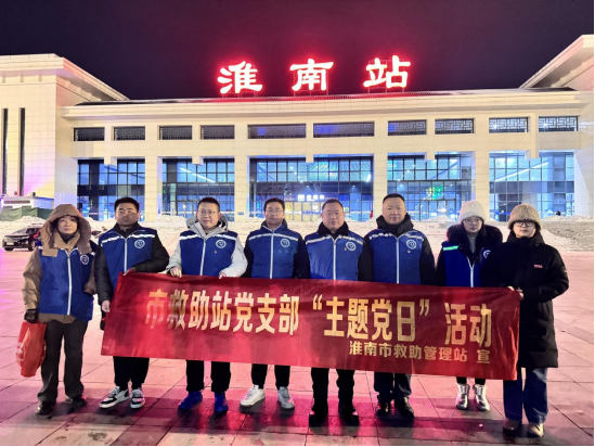 1月21日晚,站党支部全体党员同志先后深入淮南市商贸文化广场、淮南市火车站、桥梁涵洞等流浪乞讨人员易出现地区开展街面巡查。巡查中,发现流浪乞讨人员后,立即了解情况并送上棉衣、棉被、热饮和食物,耐心劝说其到救助站进行安置,详细讲解救助站的住宿、医疗等保障服务,对不愿进站的人员,逐一登记信息、留下救助联系方式和物资,确保其温暖过冬。同时,对周边商户、环卫人员发放“寒冬送温暖”倡议书,发现流浪乞讨人员及时拨打救助热线0554-6912345或110报警电话,以便流浪乞讨人员得到及时救助。